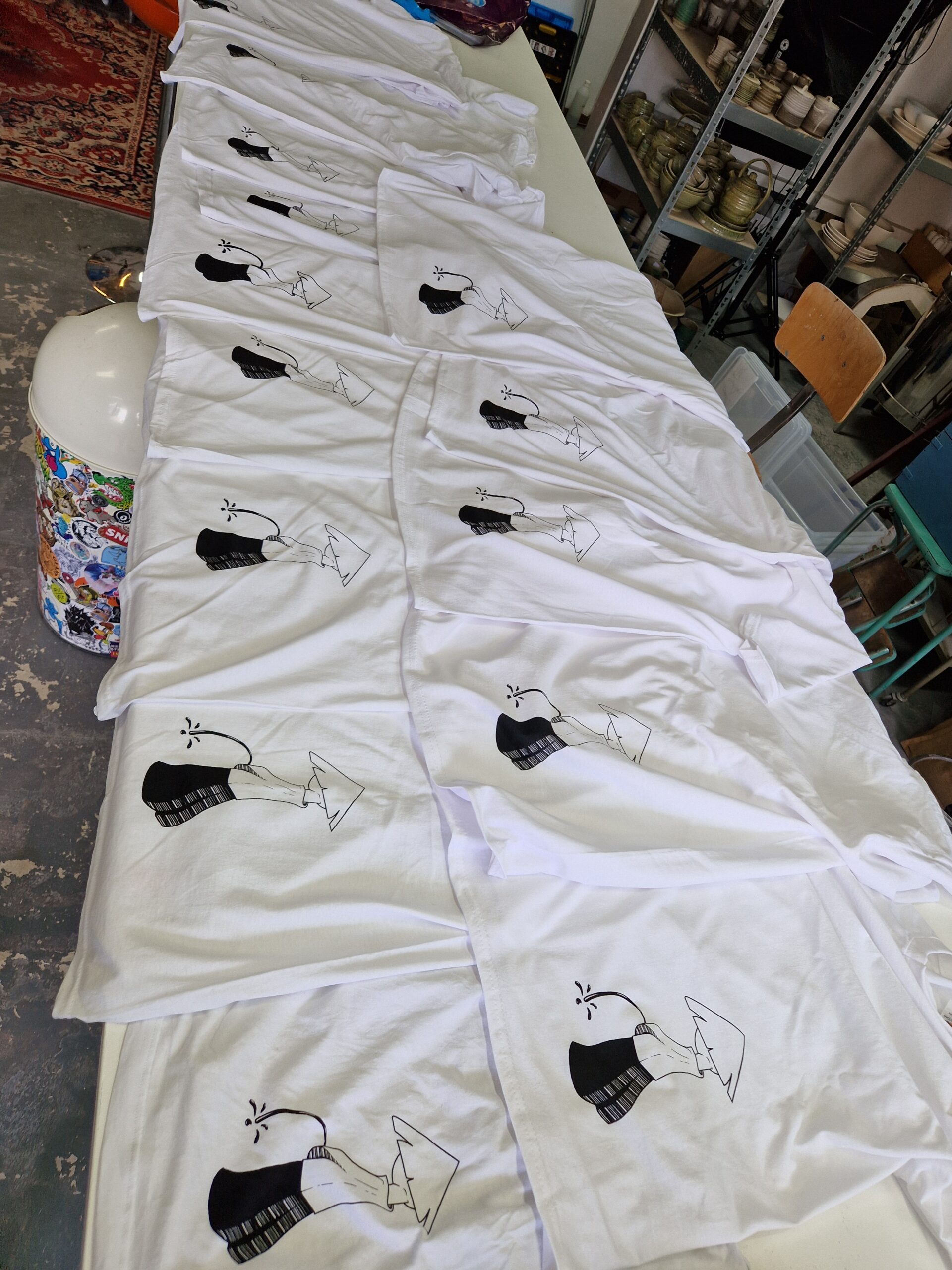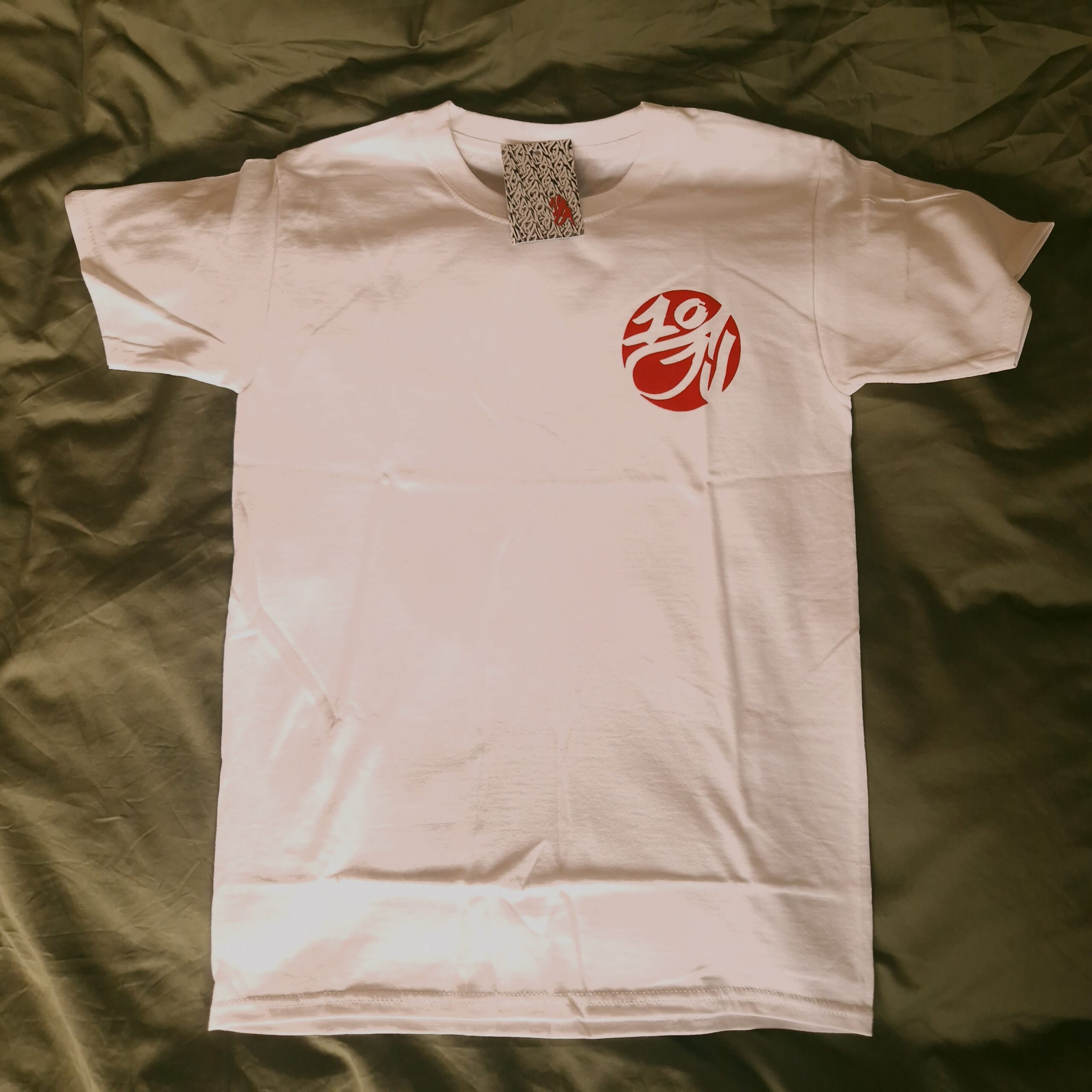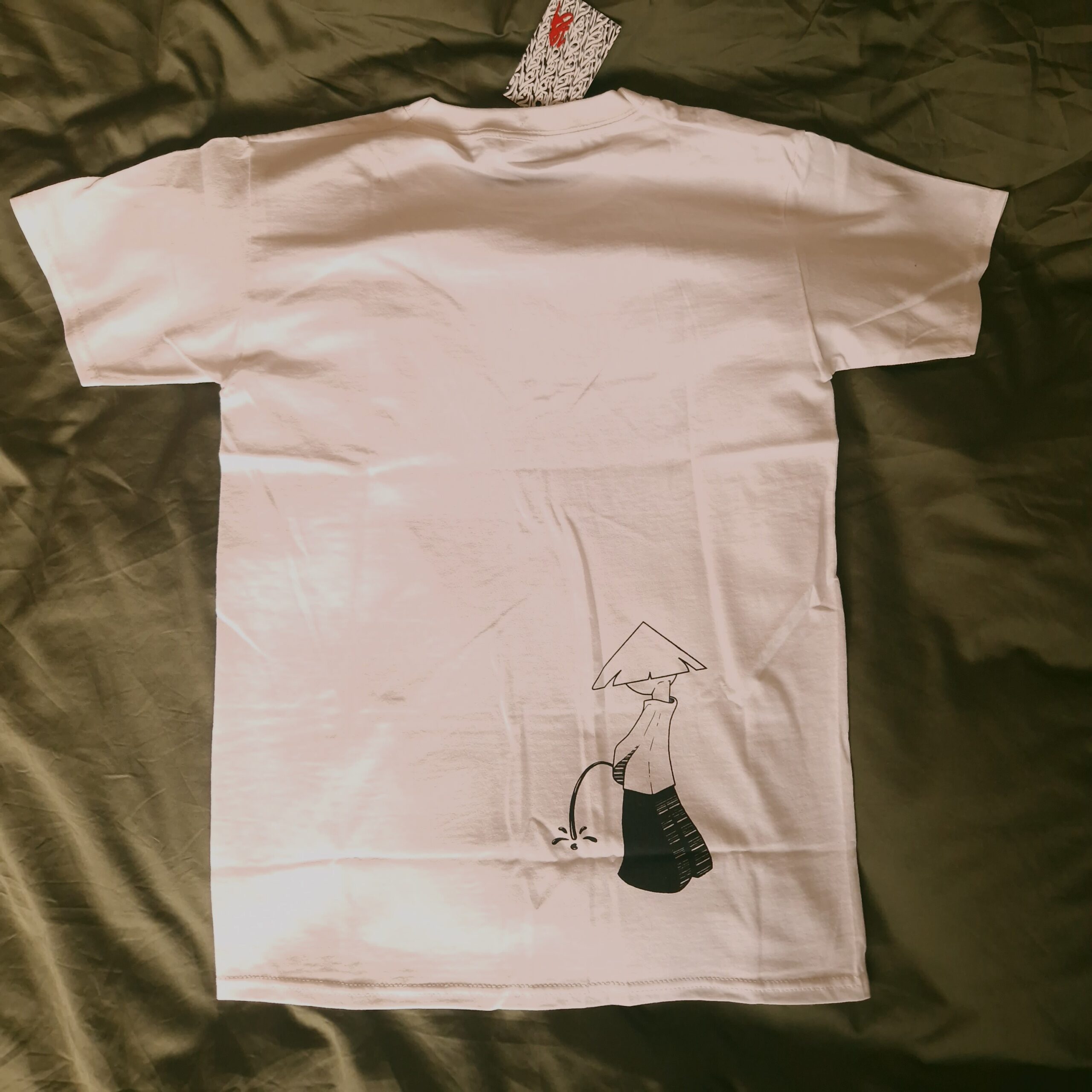 Figure of the pissing samurai is located on the right side of the lower back, 10GU logo positioned on the heart.